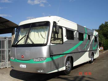 de painel 25000 BTU's / Gerador Generac Blindado gasolina 5500 kva especial p/motor home / 4 sapatas hidraulicas / Toldo de enrolar importado lateral e nas 5 janelas Carefree / Antena Winnegard c/buster e Antena Sky Winnegard c/decodificador de sinal fechado / Inversor 2000 wats / 2 baterias parte habitavel / Piso dos maleiros revestido em borracha / Porta de tela na entrada / Janelas de correr com tela e vidros fumê /Persianas nas janelas e black-out / Barzinho externo com TV LCD 26", DVD, Ponto de TV Sky, Adega p/ vinhos e whisky 18 garrafas, Home theater e Frigobar 80 lts. / Sala c/ TV LCD 26" c/ponto de Sky, Home theater Sony e DVD / Camera de ré c/ infra-vermelho e monitor colorido 7" / Radio PX Alan 8001 / Som no painel MP3-DVD-USB-CD / Bancos da cabine em couro importado c/regulagem elétrica marca Flexsteel / Quarto c/ TV LCD 23", DVD e ponto de Sky e Climatizador 12 volts / Vaso sanitario Thetford em louça antimicrobial / Toalheiro elétrico p/secagem das toalhas / Painel do veículo em couro / Claraboia do banheiro c/exaustor / Claraboia da cozinha c/ventilador e exaustor / Pias da cozinha e banheiro em pedra especial Silestone exportação / Ar condicionados na sala e quarto 15000 BTU's c/controle digital / Aquecimento de água pelo motor com boiler de 60 lts. / Sensor contra vazamento de gás. Escada eletrica importada c/piso anti-derrapante.