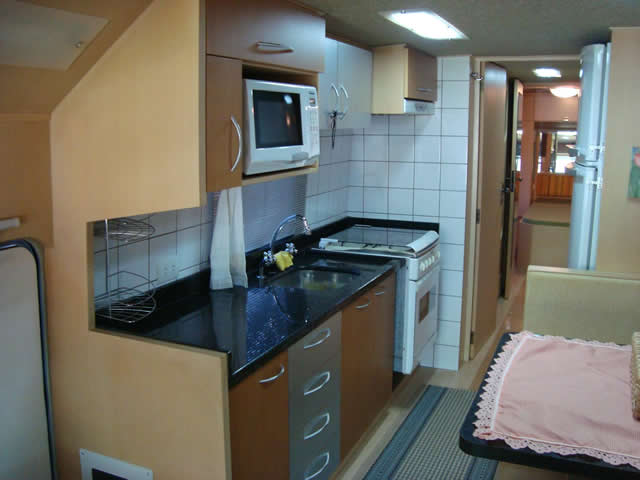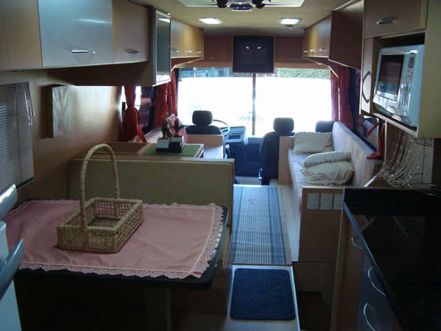 Acessórios: 02 climatizadores 12 v. (quarto e sala) - Refrigerador duplex elétrico 440 lts - Fogão 4 bocas com forno - Exaustor - Micro ondas - Pia cozinha e banheiro em granito - TV 21" na sala - Antena Winnegard - Banheiro c/box separado e porta de acrilico - Vaso sanitario Aqua Magic - Ducha higiênica - Aquecedor de água á gas automatico Equibras c/misturador - Som CD com MP3 - Conversor de voltagem 220/110/12 v. 7000 wats - Gerador a Diesel (desligado) - Toldo de enrolar - Tanque de água potável 400 lts - Bomba d'água Shurflo - Tanque de águas servidas 300 lts - Tanque de dejetos 250 lts - Tanque de combustivel 600 lts - Direção hidraulica - Embreagem a ar - Suspensão a ar - Rodoar - Engate traseiro - Rodas cromadas - 6 pneus novos - Farois de milha.